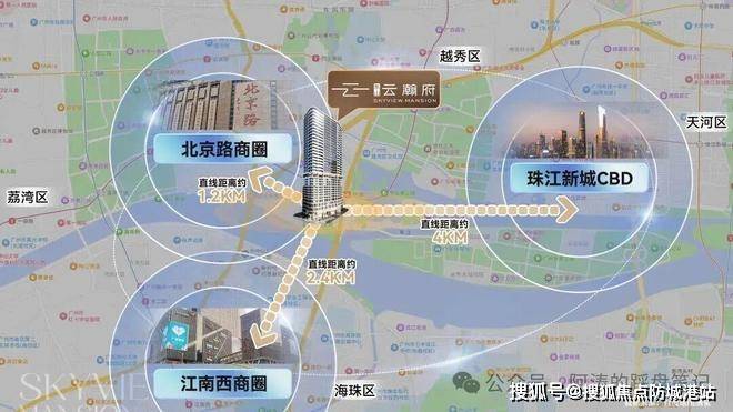 商业配套同样不用担心。400米就是江湾新天地,日常购物餐饮很近;900米左右到中华广场和北京路步行街,传统商圈的烟火气和时尚感兼得。往东可以快速连接珠江新城,往西直达江南西,位置正好卡在几个核心商圈的交汇点,生活半径很小,下楼一公里内基本能满足所有日常需求。