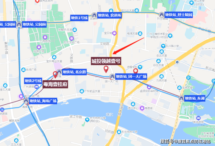 项目位于越秀区,广州的政治、文化和历史中心,处于核心区域的黄金地带,紧邻珠江水岸,地理位置无可挑剔。周围绿树成荫,是市中心罕见的宁静宜居地,尤其是邻近的东湖公园,为住户提供了丰富的休闲与娱乐空间。交通便利性也堪称一流,距离团一大广场地铁站仅几步之遥,可以轻松连接广州各大商业与行政区域。