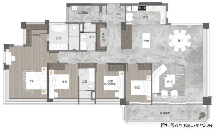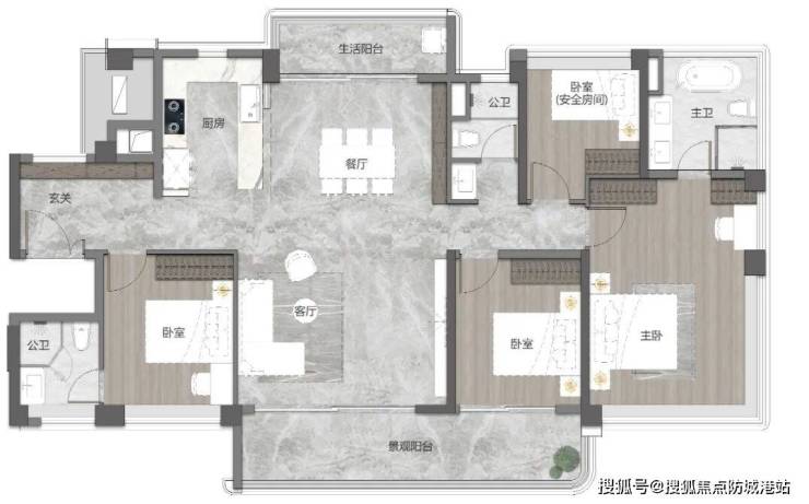 在更大面积的户型中,项目通过双套房结构与超宽客厅设计,进一步提升居住舒适度。例如部分户型拥有南北双阳台,使室内空气流通更加顺畅,同时形成观景平台。对于追求居住品质的家庭而言,这样的设计能够在城市住宅中实现更加舒适的生活体验。
