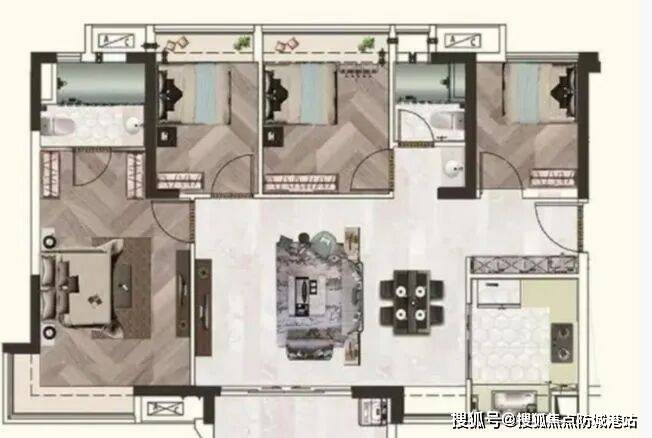 103㎡ 4 室 2 厅 2 卫:适合二孩家庭或三代同堂,空间开阔,满足不同家庭成员的生活需求。