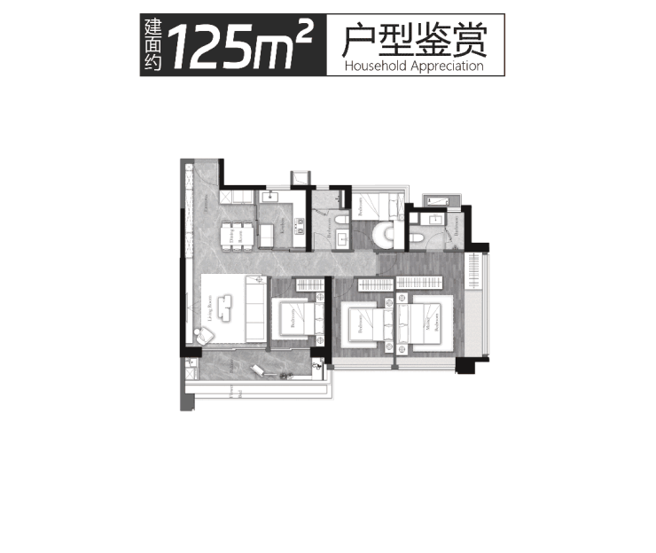 建面约 125㎡ 3 房 + 2 厅 2 卫 + 灵动空间:全明 4 开间朝南,约 12.8 米大面宽舒居,空间开阔通透;IMAX 大方厅设计,提升居住舒适度和空间利用率;LDK 一体化设计,全屋科学收纳系统,实用率高,满足日常居住的收纳需求。