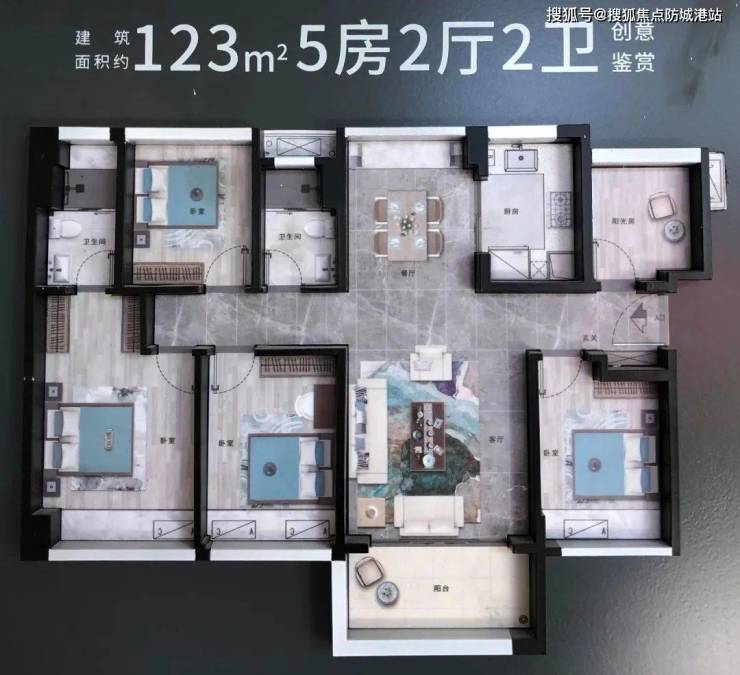 至于建面约123㎡5房2厅2卫设计,户型设计非常方正,几乎对称性设计,主卧还采取了步入式衣帽间设计,收纳功能在线。