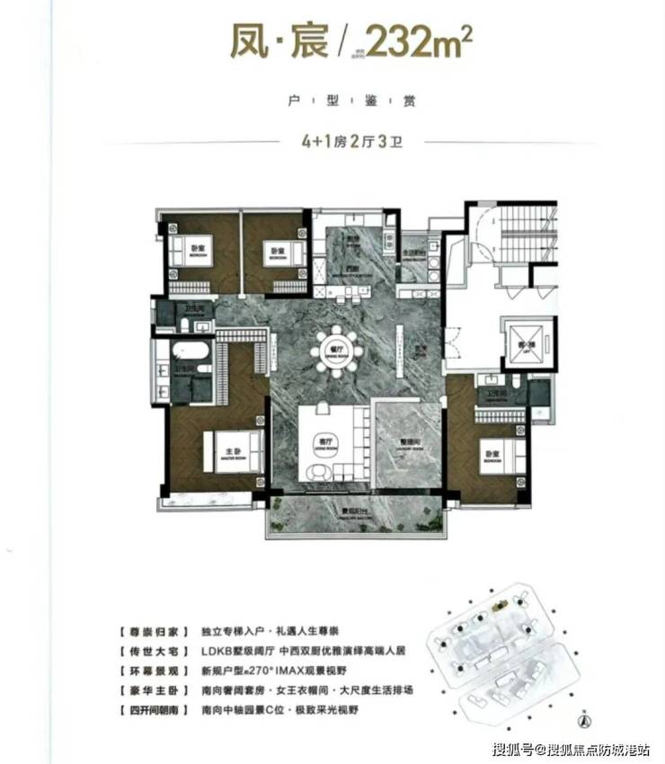 建面约232㎡ 4+1房两厅三卫,是项目的头排江景楼王户型,专为终极改善客群打造,汇聚项目最优质的资源,2梯2户专梯专户设计,彰显主人的尊贵身份,空间尺度恢弘,居住舒适度拉满,是顺德高端人居的典范之作。该户型拥有约18米南向超大采光面,270°环幕德胜河江景视野,推窗即可揽一线江景,将德胜河的绝美风光尽收眼底,同时保证室内充足的采光,让每一个房间都明亮通透,彰显高端人居的景观优势。