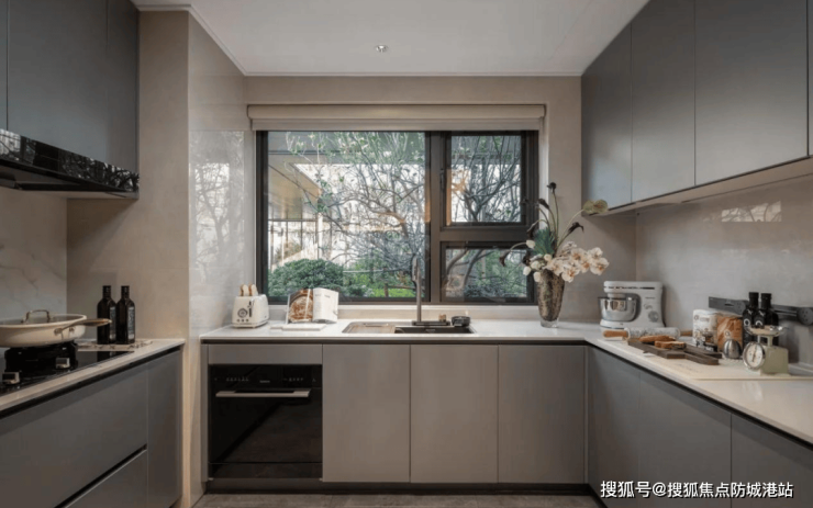 户型采用LDKG一体化公区设计,公区面积约60㎡,将客厅、餐厅、厨房、阳台无缝衔接,打造开阔通透的公共空间,既方便家人日常交流互动,又能提升空间的通透感与舒适度,朋友聚会、家庭聚餐时,空间充足,不会显得拥挤。厨房采用U型设计,操作空间充足,动线合理,洗菜、切菜、炒菜流程顺畅,同时配备高端精装交付标准,让烹饪成为一种享受。