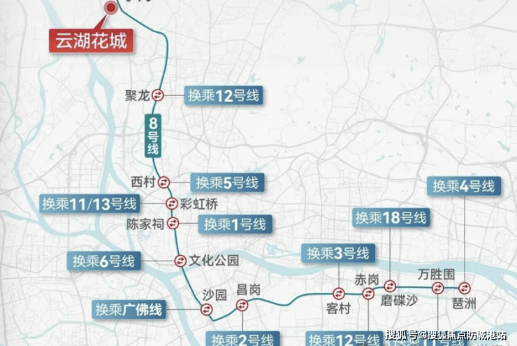 交通层面,项目距 8 号线亭岗站 C 口仅约 400 米,步行 5 分钟可达,8 号线为广州核心地铁干线,可换乘 1/2/3/5/6 号线,3 站接驳广州白云站(大型综合交通枢纽),直达白云新城、海珠、天河、琶洲等核心商圈,通勤效率拉满。社区自带公交总站,周边十余条公交线路覆盖白云、荔湾、越秀,自驾三横三纵路网环绕,30 分钟直达珠江新城、白云新城、越秀老城,无论是地铁通勤、公交出行还是自驾,均能满足日常需求。