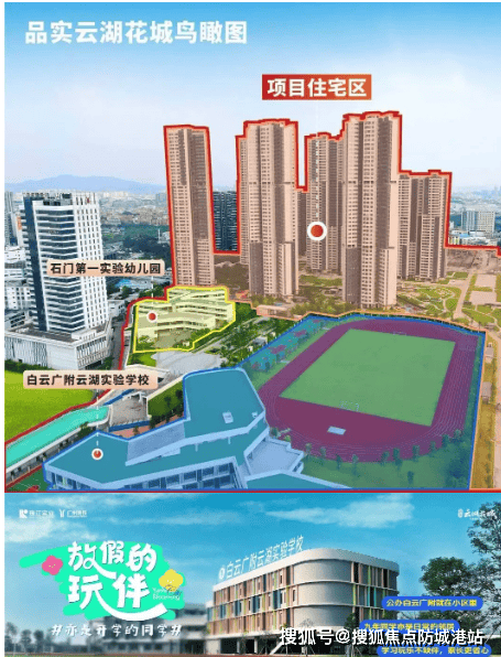 项目配建 1 所 15 班幼儿园(已开学),并与白云广附云湖实验学校(九年一贯制公立学校)无缝对接,该校 2024 年已开学,办学规模为 30 班小学 + 18 班初中,可提供 2280 个学位。学校配备美术展厅、书法室、录播室等 12 类功能室,硬件设施达省一级学校标准,业主子女可实现 “目送式” 教育。