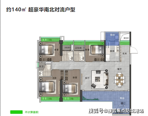 终极改善:140㎡四房户型,南北对流设计,实测客厅面宽 4.5 米,主卧套间面积约 25㎡,配备独立衣帽间与卫浴,满足多代同堂需求。