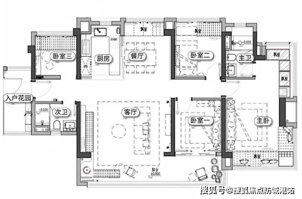 所有户型均采用新规设计,使用率较高,无论面积大小都有入户花园,各个卧室也都有超大飘窗。