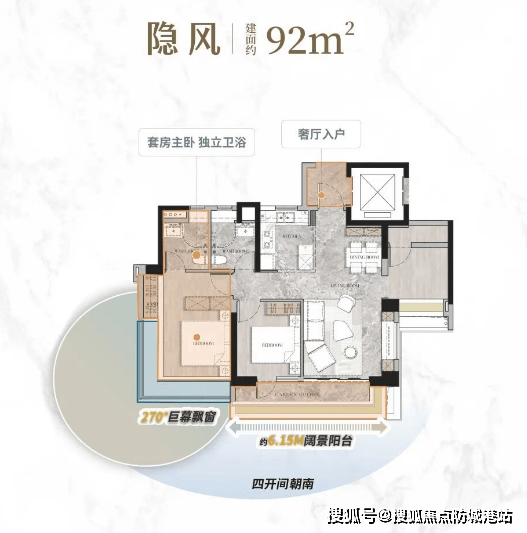 奢享主卧:270°巨幕飘窗,无垠景观环绕。