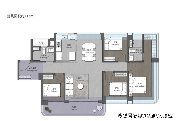 115-123㎡四房:配备入户花园、超大采光面,南北通透,兼顾实用与舒适;