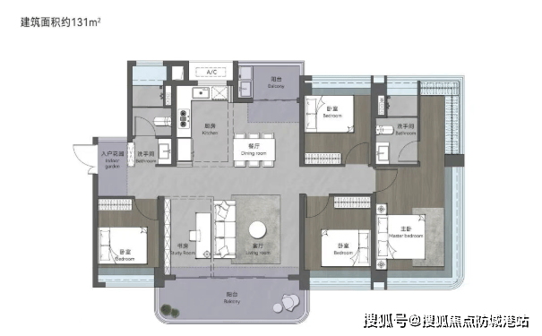 131-132㎡四房:270°环幕阳台、50㎡大方厅,视野与尺度兼得;