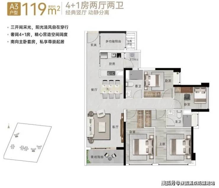 在售户型:78㎡2+1房、89㎡3房2卫、117㎡4房2卫;