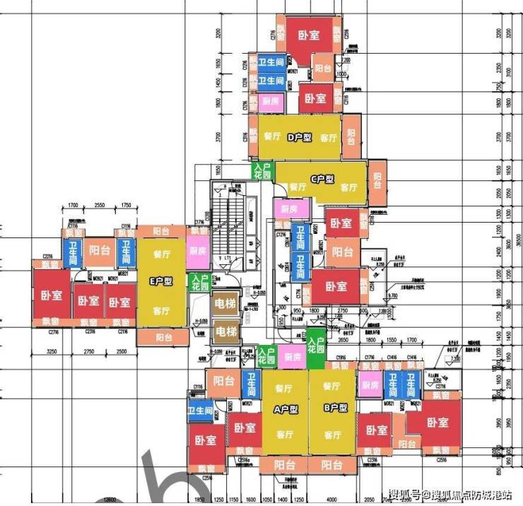 第3-24层(A/B/C/D/E):这一楼层段的户型布局相对统一,主要满足主流居住需求。A/B/C/D户型的三房设计,空间紧凑实用,动静分离合理,非常适合年轻家庭。E户型的四房设计,空间宽敞,功能分区明确,适合大家庭居住。