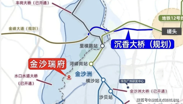 跨城路桥:金沙洲全域八大桥梁环绕,金沙洲大桥、大坦沙大桥、同心桥、黄岐大桥等全线通车,沉香大桥官方规划待开工,未来通车后 5 公里直达白云新城;广佛通勤无道路阻隔,往返佛山南海十分便捷。