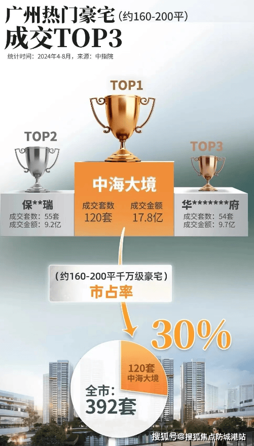2023年9月,海珠上涌地块历经85轮激烈竞拍,最终由中海以可售楼面价57206元/㎡摘得,刷新区域地价纪录。仅半年后,项目便以约160-200㎡户型斩获广州千万级豪宅销量、成交金额、面积“三冠王”,市占率高达30%——每3位购买该面积段的豪客,就有1位选择中海·大境。这座位于广州城市新中轴南段的超级大盘,正以地铁、教育、生态、商业四维一体的全能配置,重新定义海珠高端人居标准。