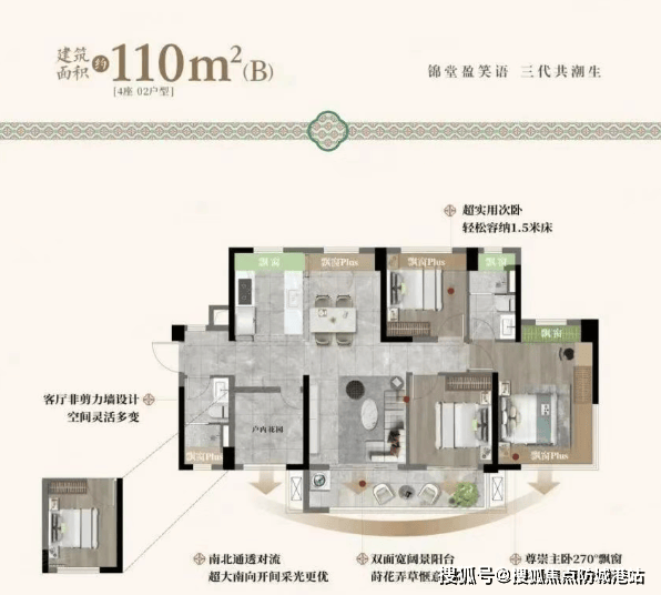 108-110㎡ 3+1房两厅两卫:刚改人气王,三代同堂