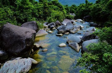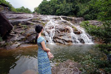 京族人民在各类渔业生产中,依据各地地理环境的不同,创作出多种补鱼的工具和方法,如渔业工具有拉网、塞网、渔箔、刺网,以及用于专门渔猎对象的鲨鱼网、南虾网、海蛰网、鲎网、墨鱼网等。唱哈节:“唱哈节”是京族最隆重和最盛大的传统节日。“唱哈”是京语,即“唱歌”之意。传说越南陈朝时,有一位歌仙到京族地区,以传授歌舞为名动员京族人民起来反抗陈朝的统治,得到京族人民的爱戴和敬仰。后来人们便修建“哈亭”并设立神位来纪念他。同时因为他的歌声悠扬动听,深受人们的喜爱,所以后人便以唱歌的方式来歌颂他。第三站:屏峰雨林 告别金滩,平息金色海洋的雀跃之后,我们来到了屏峰雨林。屏峰雨林公园位于东兴市马路镇平丰村,距离东兴市20公里。公园座落在海拔998米高的罗华山脚下,公园分为红石谷两条漂流及石门谷观光瀑布群