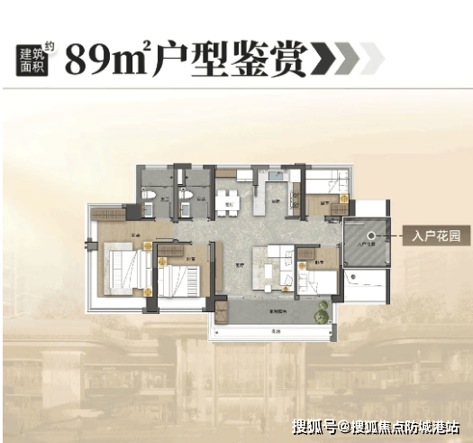 第三款:建面约89㎡五空间两厅两卫(刚改优选,通透舒适)。这款户型与87㎡户型定位相近,同样是五空间两厅两卫设计,建面89㎡,实际使用面积与87㎡户型相差不大,整体设计更注重空间通透感与居住舒适度,采用横厅设计,南北对流,适合对居住通透感有更高要求的刚改家庭,总价适中,性价比极高,既能满足家庭居住需求,又能控制购房成本。