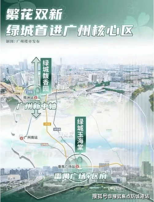 绿城馥香园位于广州市海珠区,具体位置在海珠湾心区域,紧邻地铁2号线和广佛线换乘站南洲站,直线距离仅一百米。这一优越的地理位置不仅使得居民出行极为便利,而且遥望广州塔、海心沙等知名地标,将中轴地段深深刻入了项目的血脉之中。