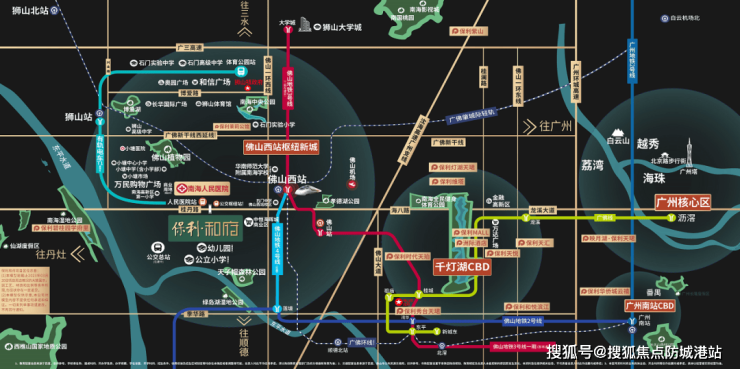 保利和府紧邻佛山地铁3号线及狮山T1有轨电车,距离仅500米。同时,距离佛山西站也仅有3.5公里,通过高铁网络可以快速到达广州南站、广州火车站等重要交通枢纽,并可进一步连接深圳、珠海等地,形成便捷的都市生活圈。