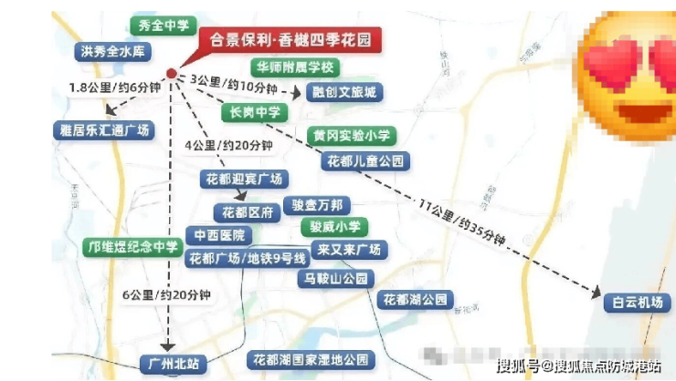 尽管项目所在板块目前尚未开通地铁线路,但其交通优势主要体现在高效的自驾网络与临近的城际轨道系统。项目距离广清高速海布出口仅约1公里,通过许广高速可快速连接白云核心区域,极大提升了通勤效率。此外,项目距穗莞深城际铁路花城街站约3公里,乘坐城轨1站即可抵达广州北站,2站直达白云国际机场,为商务出行及跨城通勤提供了极大便利。项目紧邻双向八车道的花都大道,这条主干道贯穿花都南北,串联起区内多个重要节点,进一步强化了项目的交通可达性。对于依赖私家车出行的家庭而言,合景保利香樾四季无疑具备显著的交通优势。