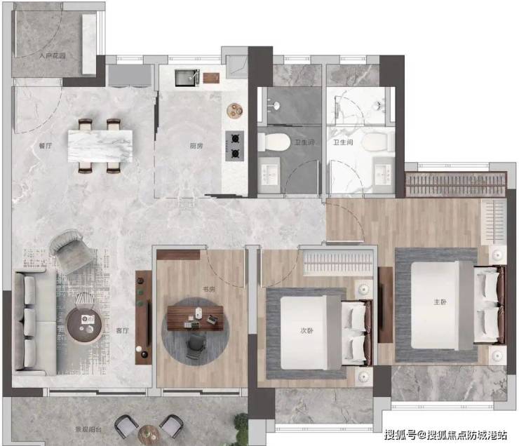 高配双主套三卫,书房可作主卧延展空间,打造总统级套房