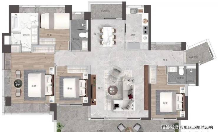双主套三卫布局,轻松容纳大家庭,多代同堂其乐融融