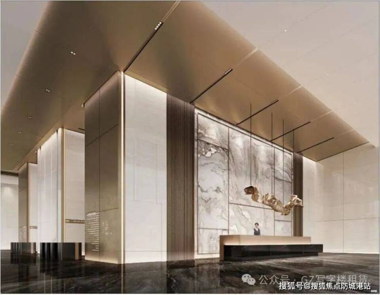 项目写字楼大堂采用约 10 米高挑高设计,空间恢弘大气,举步奢阔,方寸间尽显商务风范,彰显尊崇商务礼遇。大堂采用高端石材与金属线条装修,搭配精致灯光设计,营造出典雅大气、高端奢华的商务氛围,为企业树立良好的品牌形象,提升企业商务接待的档次与规格。大堂配备智能访客系统、24 小时安保值守、专业客服人员,提供咨询引导、来访登记、商务接待等贴心服务,保障大堂高效有序运营,为企业员工及来访客户提供舒适便捷的体验。