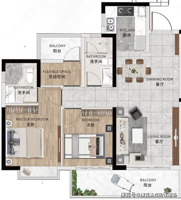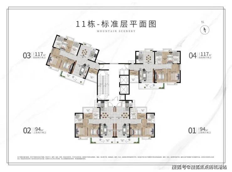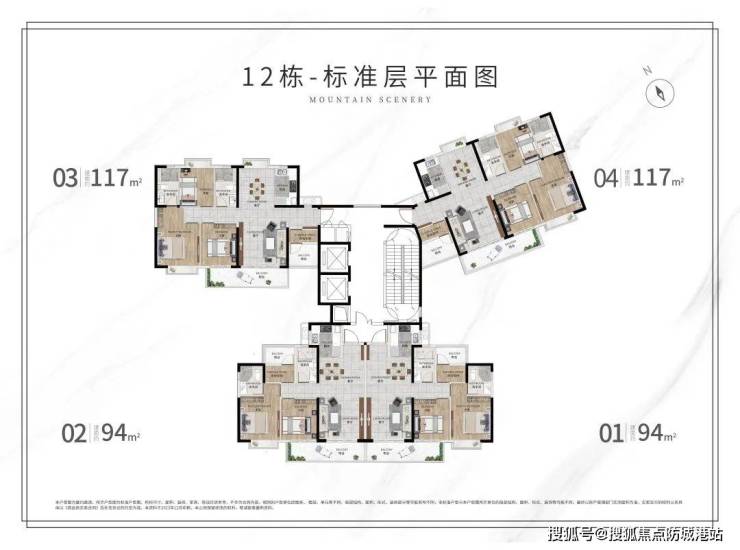 目前在售的户型包括94㎡和117㎡两种,分别提供三房和四房的选择。每个户型都注重空间利用效率和居住舒适度,配备大面积玻璃幕墙和全屋中央空调等高端配置,旨在为住户创造一个既美观又舒适的居住空间。特别是117㎡户型,采用正南北通透设计,四个房间全部朝南,最大化地享受阳光和风景。