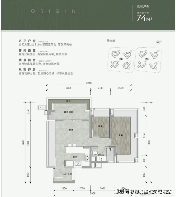74㎡两房:适合单身或新婚家庭,南向采光,功能紧凑;