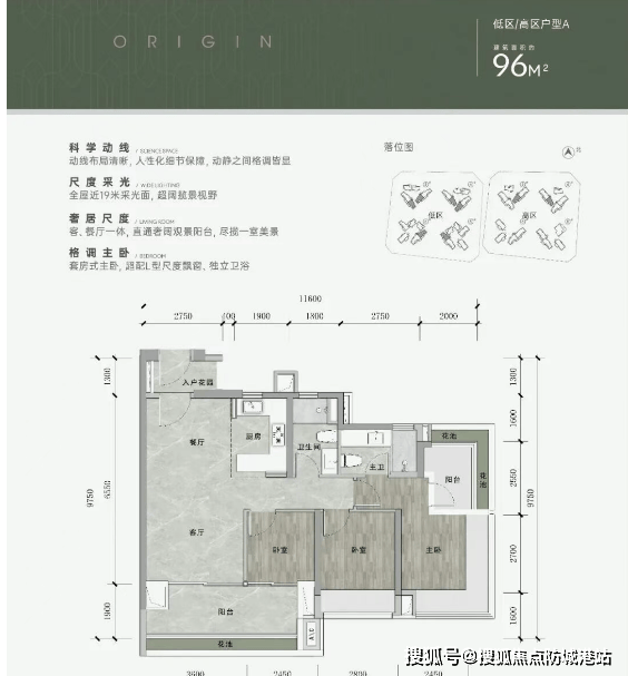 高区(30-44层):2梯5户,主推96㎡、129㎡、140㎡及以上改善型产品。