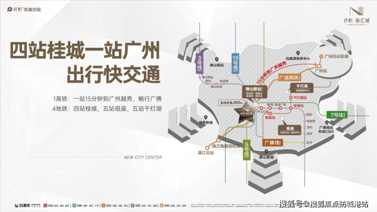 保利・新汇城虽未明确以 “600 米地铁口(规划中),到站即到家” 这样精准的表述呈现交通优势,但实则其交通网络极为发达。项目位于佛山新站枢纽区内,周边汇聚佛山地铁 3/5/7/15 号线及广湛高铁。其中,广湛高铁预计 2025 年开通,它将成为广佛两大超级城市群以及白云机场和珠三角枢纽机场的连接纽带。这意味着业主未来不仅能够便捷地穿梭于佛山各区域,借助地铁网络满足日常通勤、休闲娱乐等需求,还可通过广湛高铁快速抵达广州乃至全国其他城市。无论是前往白云机场开启一段远程旅行,还是借助交通枢纽的优势进行商务出行,都将变得轻松高效。如此强大的交通配置,使保利・新汇城融入大湾区快速交通圈,极大地提升了业主的出行便利性与生活效率。