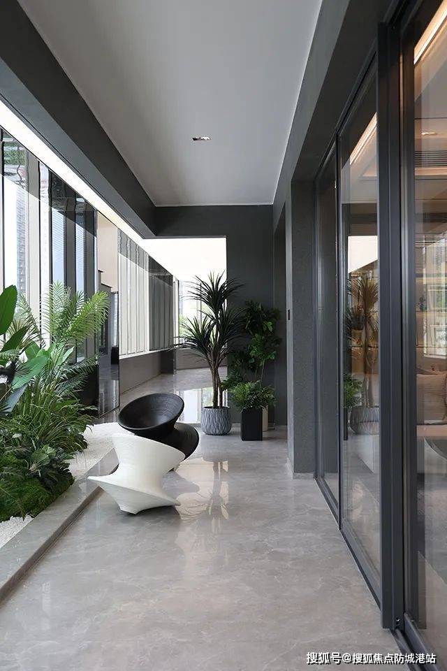 一来,可以将江、山、河、园四景统统拿捏:北向瞰江景、顺峰山景,南向瞰山景、园景;二来,营造“你看到外面,外面看不到你”的尊贵体验。
