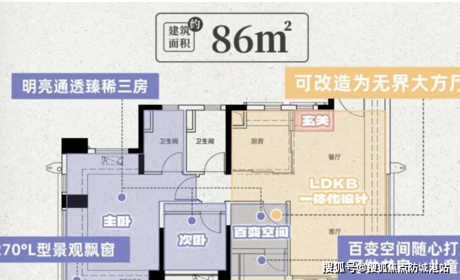 建面86平的三房两卫户型,采用了LDKB设计,空间布局合理,动静分离🛋️ 南向景观大阳台,让阳光充分洒进室内,让您的生活充满温暖。阳台连通次卧,约6.4米长,增加了室内的使用空间和通透感。主卧带270度景观飘窗,让您在卧室里就能欣赏到美丽的江景或小区景观,仿佛置身于一幅美丽的画卷中。总价266 - 310万左右,性价比超高,非常适合小家庭居住。致电官方售楼处400-0688-602,抢占最后优惠(官方售楼部)