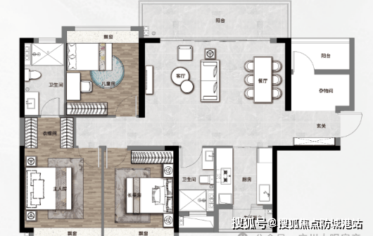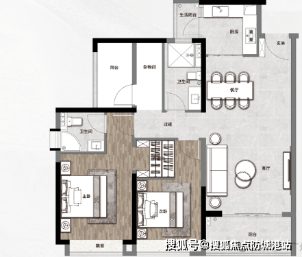 105㎡三房两厅两卫,纯南向设计,三开间朝南,视野开阔。