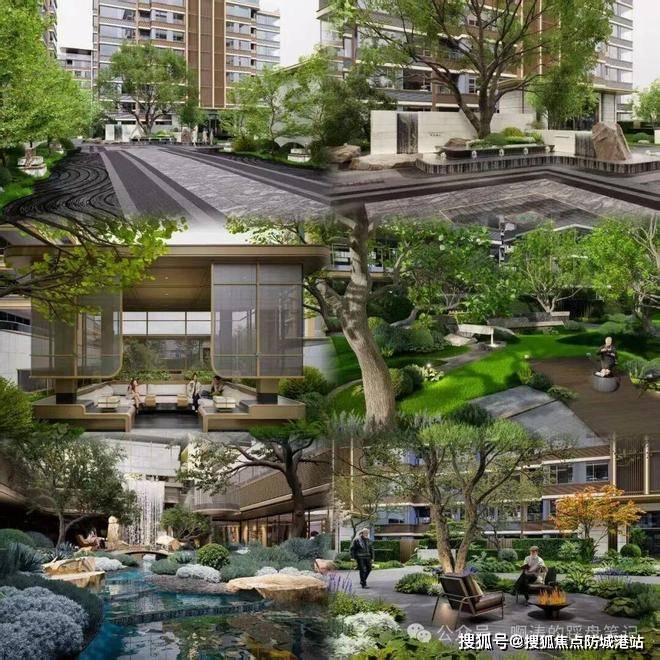 本项目最具特色的空间表达方式,是对岭南园林文化的现代化复刻。社区园林设计灵感来源于余荫山房造园哲学,遵循“小中见大、曲径通幽”的空间逻辑。社区入口通过双府门礼序系统构建归家仪式感,第一重为城市界面礼仪空间,第二重为景观过渡空间,第三重为建筑私属归家空间。植物配置采用岭南传统吉祥植被体系,例如香柚、香橼等象征家族兴旺的植物品种,使得景观不仅具有视觉观赏价值,同时承载文化象征意义。
