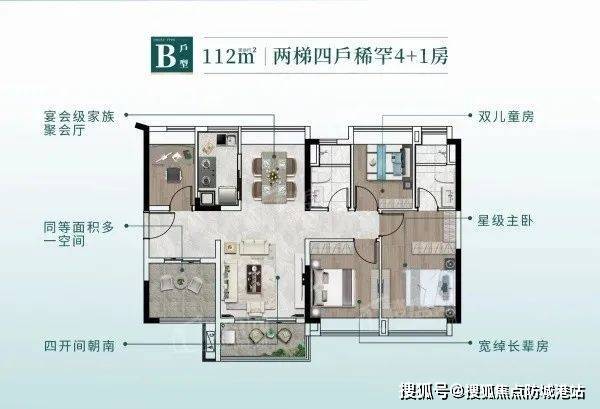 该项目在设计上注重实用性和舒适度,推出了多种户型选择,从89平方米到112平方米不等,满足不同家庭的需求。每个户型都经过精心规划,确保了空间的有效利用和居住体验。例如,89平方米的四房户型设计紧凑而实用,112平方米的五房户型则更加宽敞明亮,所有户型均采用全南向设计,保证充足的采光和视野。