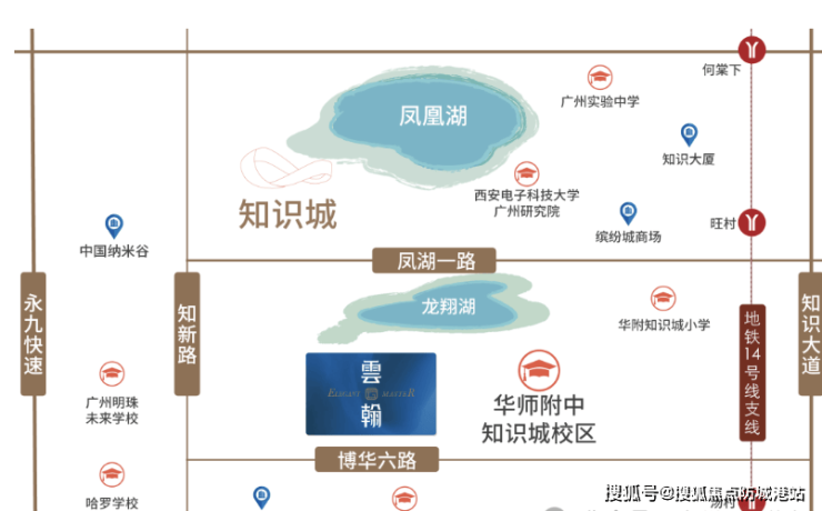 8. 广开云翰雄踞知识城核心,汇聚教育、产业等多元优质资源。教育方面,项目一路之隔是华附知识城校区(直线100米),该校投资规模大、标准高,2023年已招生;周边还有华附知识城小学、广州实验中学等多所名校,构建从小学到高中的优质教育体系。产业上,紧邻“最值钱一公里”的科创企业,人才集聚。商业、医疗等配套成熟,居住于此,孩子可享优质教育,居民可近享产业红利与完善生活配套,畅享高品质生活。