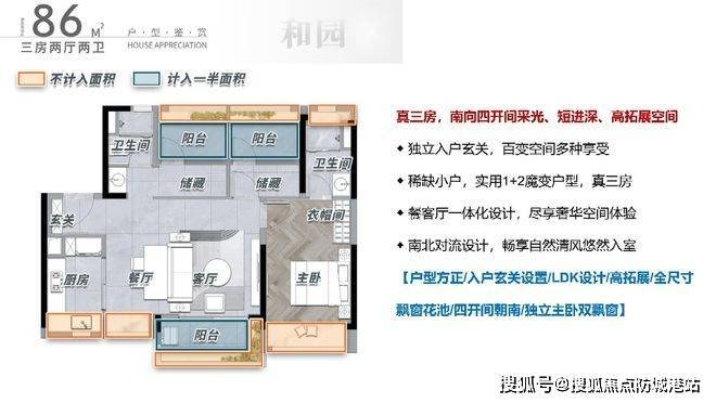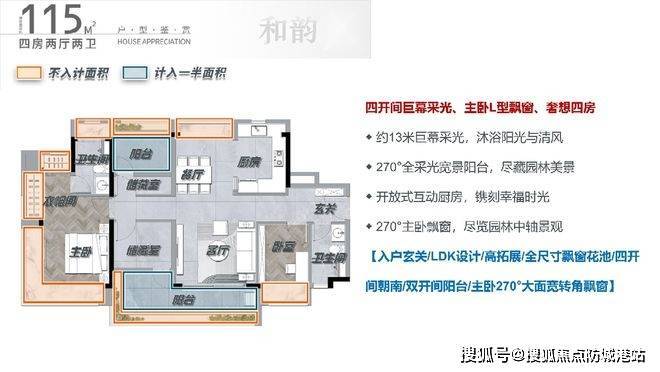 户型设计是花语和岸的最大卖点之一,作为荔湾首个实现使用率100%的新盘,所有主力户型在赠送飘窗等后,使用率都能超过100%,实际得房很友好。主要在售86㎡、115㎡、136㎡、142㎡几个经典面积段,都主打实用与景观结合。86㎡三房,开间朝南,独立玄关设计,空间灵活调节,主卧带衣帽间,客厅接270度全景阳台,南北通透,采光通风一流,实用率轻松超95%。115㎡四房,厅出大阳台,L型飘窗加宽功能区,多功能空间随意组合,收纳能力强,下班回家放空看景很舒服。136㎡四房,多房朝南无遮挡,客厅开间约5米,双阳台南北对流,主卧270度L型大飘窗拓展800mm收纳,景观视野开阔。142㎡四房,2梯2户加独梯入户,私密性拉满,双主卧配置,8.5米宽景阳台直面花地河水景,北阳台望河,南飘窗看园林,双面景观享受。整体户型方正,飘窗政策优化后空间更宽裕,居住舒适度高。