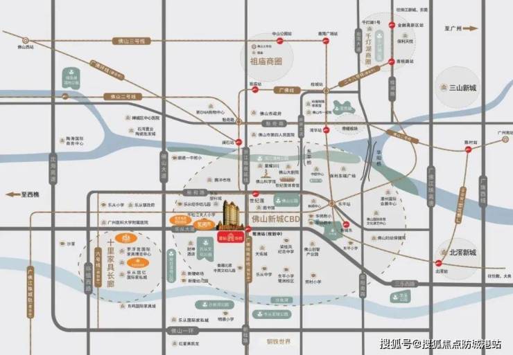 项目坐落于佛山新城南部乐从中心板块,佛山新城是佛山未来的中心,是面向大湾区乃至全国的城市会客厅,目前政府斥资3000亿重点打造,集聚市政鼎级配套,可同时享受乐从镇中心醇熟配套与佛山新城区域发展利好,区位优势不言而喻。