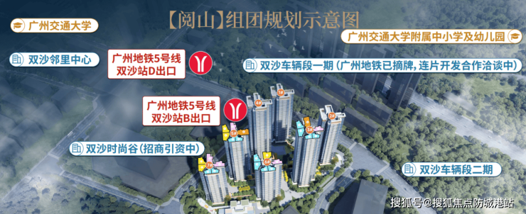 项目紧邻地铁5号线双沙站,步行仅需几分钟即可到达,且距离地铁13号线双岗站也不到500米,双地铁站护航,交通便捷性极高。从项目出发,两站可达鱼珠CBD,五站至金融城,六站抵达琶洲东区,十站直达珠江新城。