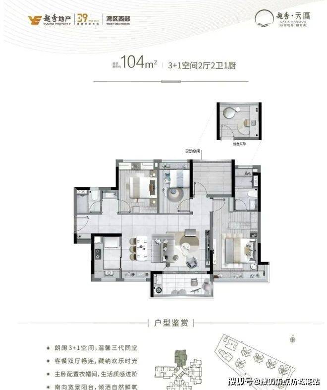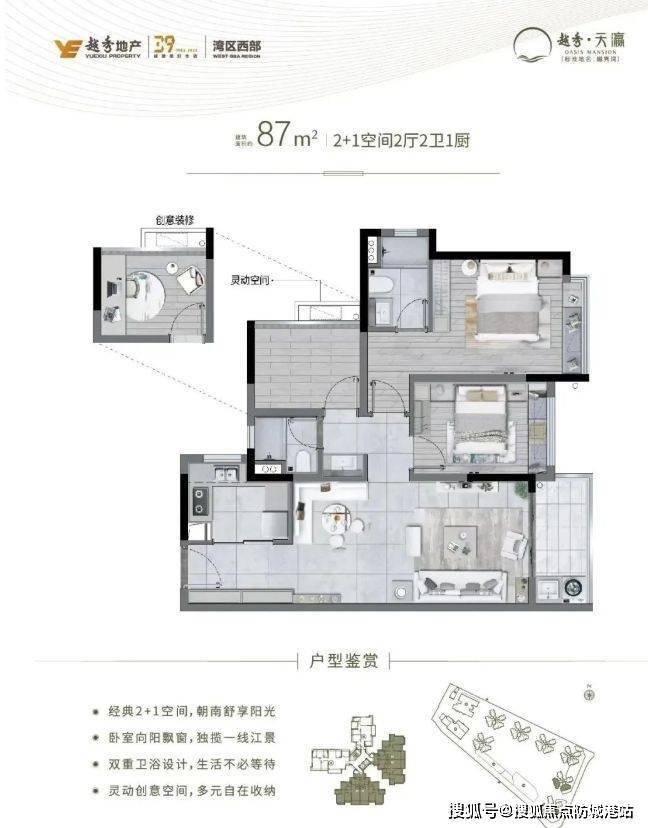 主推户型有 87㎡、104㎡、125㎡的 N + 1 创意空间,满足不同家庭需求。87㎡的 2 + 1 创意空间 2 卫户型,南向三开间,能直揽江园景色,使用率约 94%。104㎡的 3 + 1 创意空间 2 卫户型,南向 4.5 米开间,使用率约 96%,还有约 6 米超宽横厅,江园景观尽收眼底。125㎡的 3 + 1 创意空间 2 卫户型更是亮点满满,南向 4.5 开间,15.3 米阔绰采光面,使用率约 98%,近 8 米对流进深,约 6.7 米巨幕景观面,近 5 米景观阳台头排亲珠江,能收藏江园美景,南北对流,主卧套房进深约 7 米,还有 L 型瞰景飘窗。这些户型设计注重空间利用和景观视野,为居民提供舒适的居住体验。