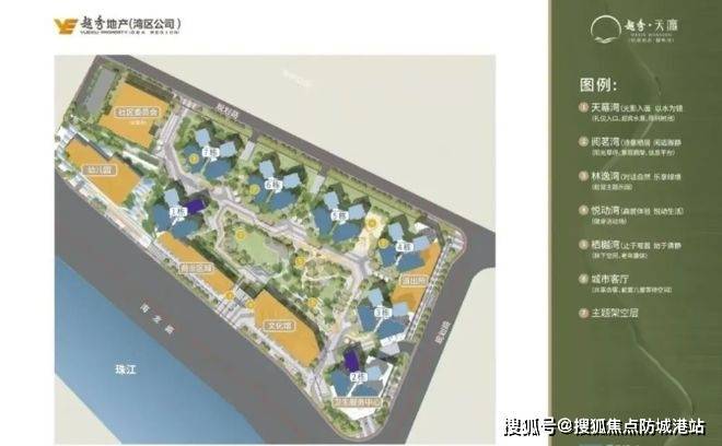 项目位于荔湾区海龙科创区板块,雄踞荔湾中心珠江畔,位置独特。2021 年 4 月由越秀地产拿地,总占地面积约 4.8 万㎡,建筑面积约 16.8 万㎡ 。体量不大,却规划精巧,7 栋 15 - 26 层高住宅和 1 栋大平层人才安置房组成,采用半围合式望江布局,实现 80% 户型望江,充分利用了江景资源,为居民打造独特的居住景观。中央园林约 1.4 万㎡,为小区增添绿意与休闲空间。