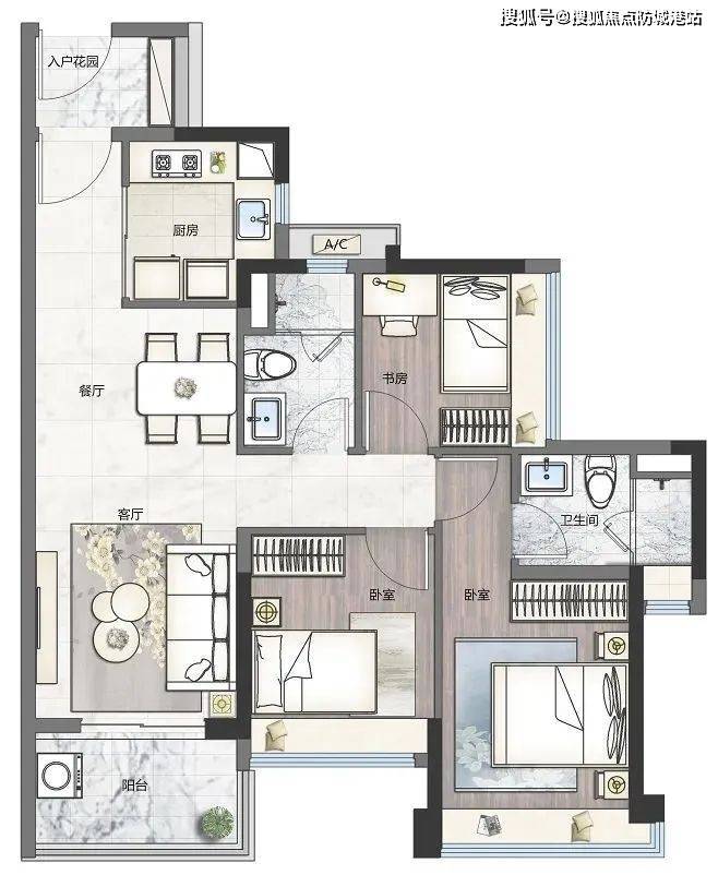 【建面约75㎡三房两厅一卫】市面稀缺户型,同等面积多一房20×万总价刚需上车,满足三代同堂、二孩家庭