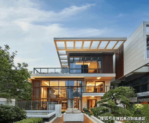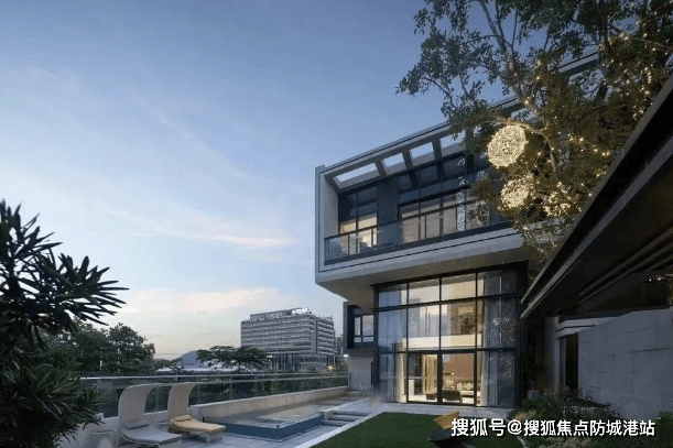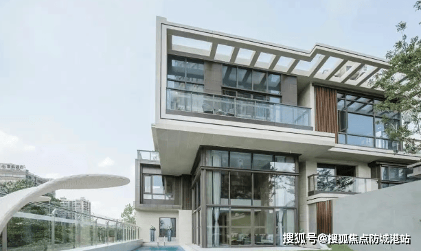小区整体采用现代简约风格,建筑外观轮廓分明,大面积玻璃的应用让空间显得通透且富有艺术感。每栋别墅外立面均使用黄金麻天然石材,提升了项目的品质感。此外,每个户型都配备了一户一泳池的设计,尤其是云山墅,拥有约7.9米高的挑高中西宴会厅,以及全景视野的玻璃幕墙,将室内外美景完美融合。