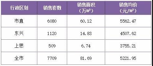 商品住宅方面,上半年,全市商品住宅销售7709套,其中市直6080套、东兴市1120套、上思显509套,分别占销售总量的78.87%、14.53%、6.60%:全市商品住宅销售面积81.69万㎡,其中市直60.12万㎡、东兴市14.83万㎡、上思县6.74万㎡:全市商品房销售均价为5221.95元/㎡,其中市直5562.47元/㎡、东兴市4507.62元/㎡、上思县3755.21元/㎡。