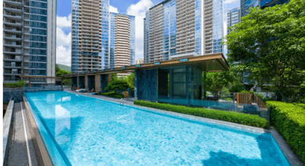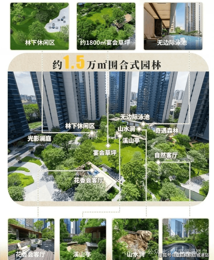 园林方面,项目利用地块内的20余棵原生古榕树资源,打造了约1.5万平方米中央立体园林,这在寸土寸金的天河核心区堪称罕见。园林采用“一轴两环”的景观结构,规划了六大主题景观区,包括儿童活动广场、登山步道、无边界泳池等,同时引入了超过三十种名贵花卉植物,打造独具特色的花园式植物王国。林下空间更是融入野鸢尾、春羽、花烟草等超30种植物,塑造出舒适惬意的氛围。此外,项目还打造了建面约1300㎡的榕樾山水会客厅,引进与汇悦台、宝格丽酒店等同款的意大利高端健身品牌——泰诺健,划分出拳击、健身、瑜伽等区域,为业主提供了丰富的休闲社交场景。