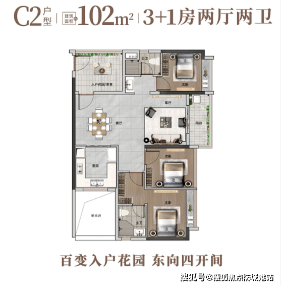 (三)改善入门款:102㎡四房两厅两卫(总价约347万)