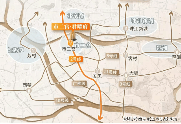 市二宫·君曜府地理位置优越,紧邻地铁2号线市二宫站B口,直线距离仅约80米,实现了真正的“地铁上盖”。无论是自驾还是公共交通,出行都极为便利。沿着滨江中路驾车,几分钟即可到达广州的核心商圈如北京路步行街等;而乘坐地铁,则可快速通达珠江新城、琶洲等CBD区域。此外,项目周边还有多条公交线路覆盖,进一步增强了交通的灵活性和便捷性。这种四通八达的交通网络,使得业主能够轻松享受城市的繁华与便捷。