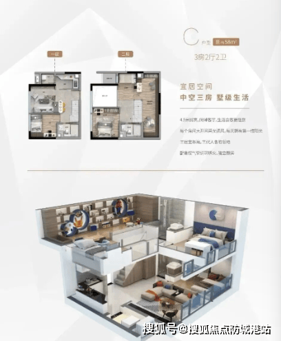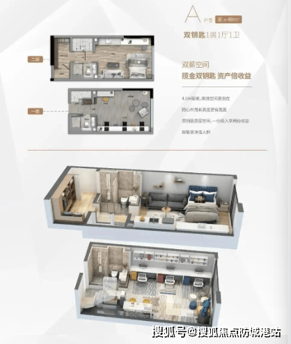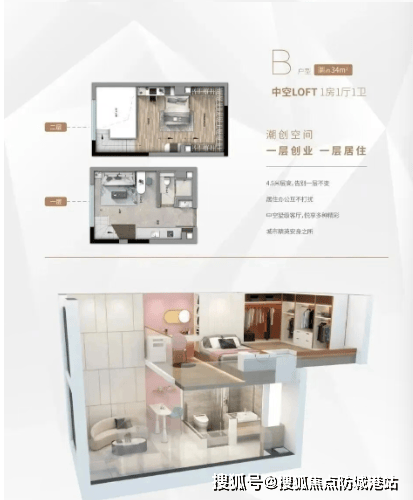 项目户型涵盖33-58㎡的LOFT一房一厅和三房住宅式设计,部分户型配备燃气管道及独立厨房,可实现办公与居住一体化。双钥匙户型允许一套房实现自住与出租分区,空间利用率高,适合年轻创业族及投资群体。